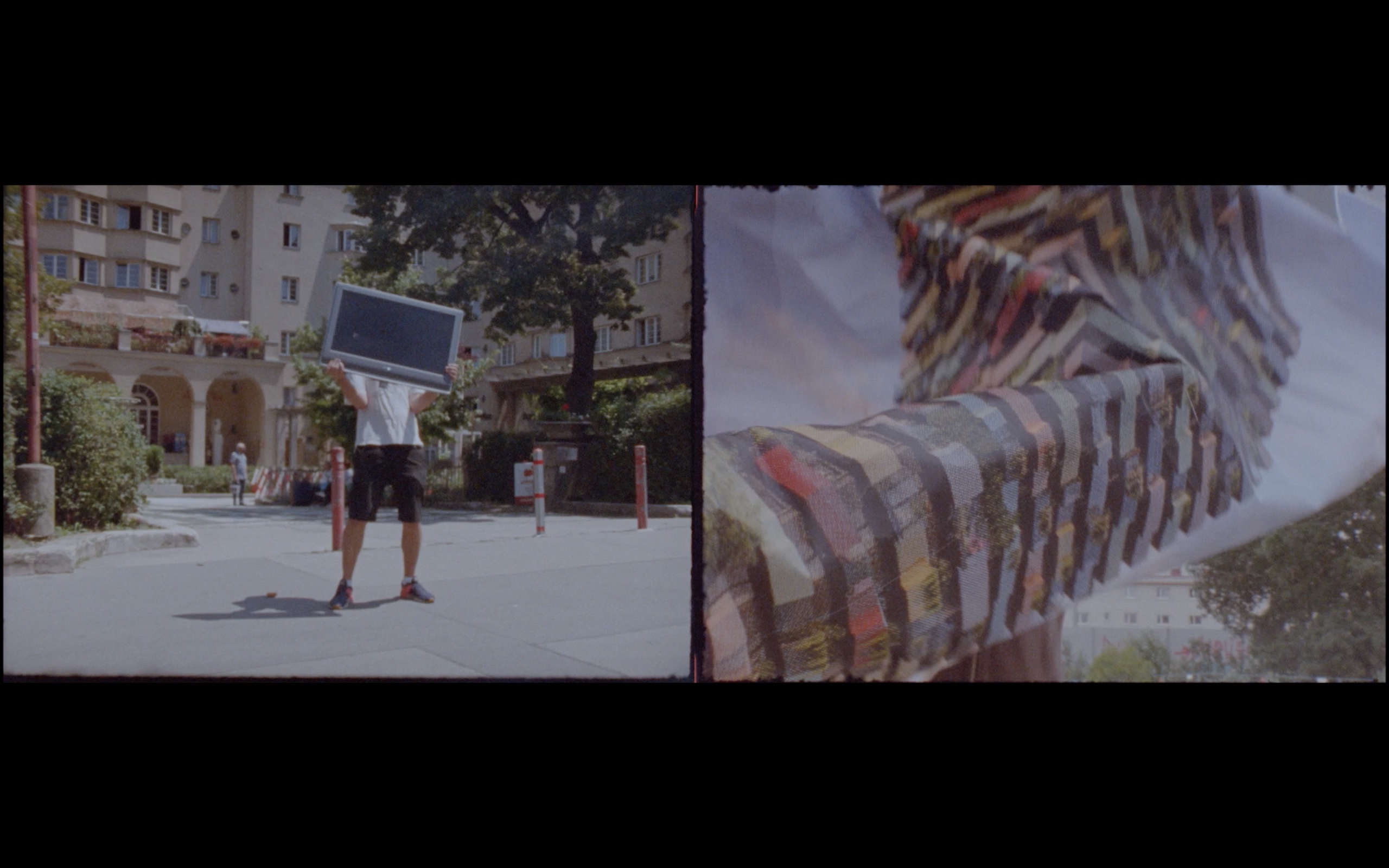 The lo-fi staging of these stories gives the film its special character: old televisions held aloft serve to hold crib notes and are thrown into the street when they’re no longer needed. Footage of houses, their uses and their demolitions are brought to life on digitally printed slips of paper glued together. And cut fingernails and crooked teeth are just as much protagonists of the film as the Reumannhof, one of Vienna’s first municipal housing developments.