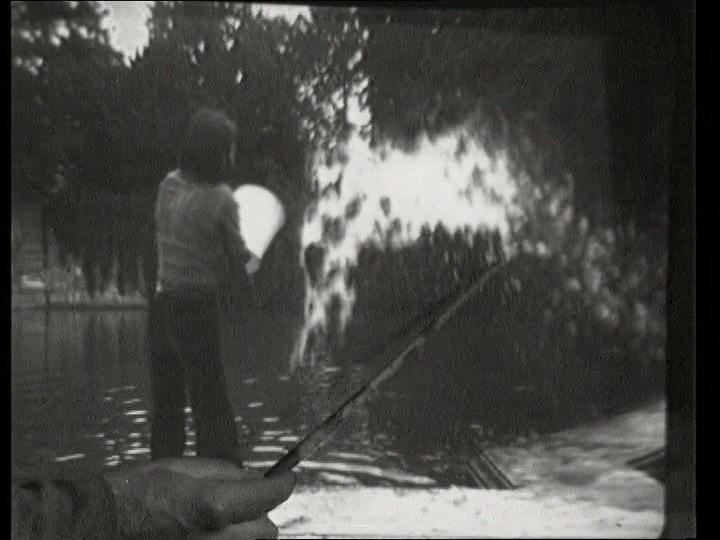 You see the water thrown, suddenly the water stops just at the moment of its greatest volume in the air, the view of the camera becomes greater and you see that you have not watched reality but a film. You have jumped from one level or reality to another (…). I trace the water sculpture on the screen (in time and space, for the reality of our senses, the water has long