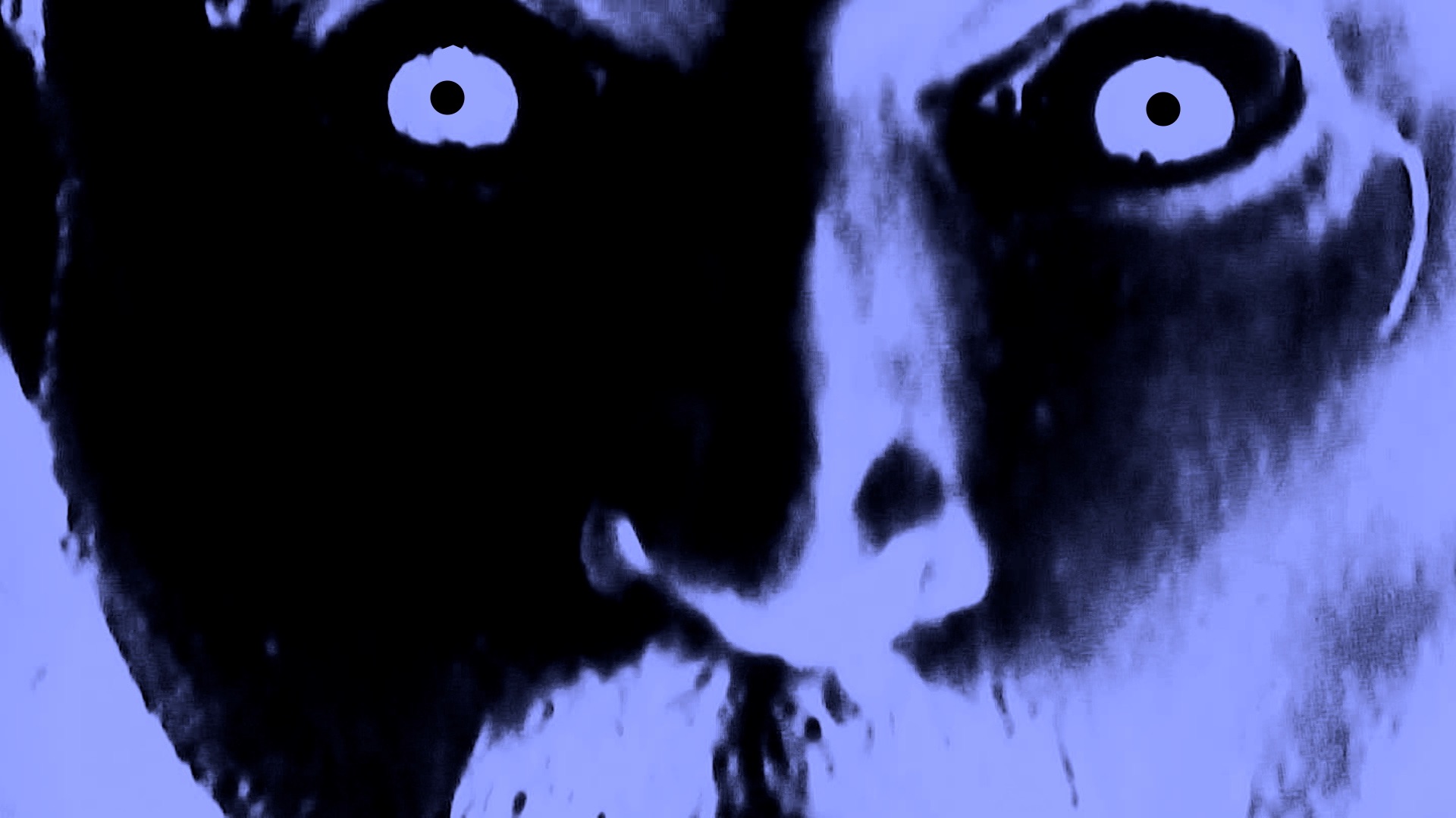 The first moving image in Dietmar Brehm’s Hylo-Vision-Plus. Version 2 is still without sound. An upper body, the left hand rowing, exposing one breast, while on the right, the silhouette fibrillates in rays of light. Repetition and difference are identifying marks in several works by the filmmaker from Linz, and here, too: while the found-footage images from Trainspotting (1996) form a frenetic nocturnal round dance in the first part of this small series, this time the tempo seems curbed, the atmosphere subdued. The strike of a gong segues to a mask-like close-up of a face whose eyes seem to have been punched out, and this ultimately opens another regime: an arena of grotesque expressions, a carousel of grimacing skulls, it could be a death dance of sorts. In the negative image, individual parts of the face emerge like signals in the flickering blue light, trance-like, accompanied by a looped sound frequency of “Horizontal Hold” by the post-punk band This Heat. Ears that appear as though scratched onto material, threatening eye sockets, shadows forming like small lakes behind the ridge of a nose—a physiognomic landscape that brings to mind the first shocking reports on the effects of silent movies, which told of a dubious interstitial zone between life and death. However, Brehm goes the opposite way, as it were, and sets the static facial images themselves in a state of agitation. The movements are minimal, slight turns of the heads, short expressive thrusts, a teetering dance; this has to suffice here, the rest is taken care of by the flickering of the lights. But like a ghostly dream, also Hylo-Vision-Plus. Version 2 ends again. The midnight awakening ends where it began: with a face from which all life slips out. (Dominik Kamalzadeh)