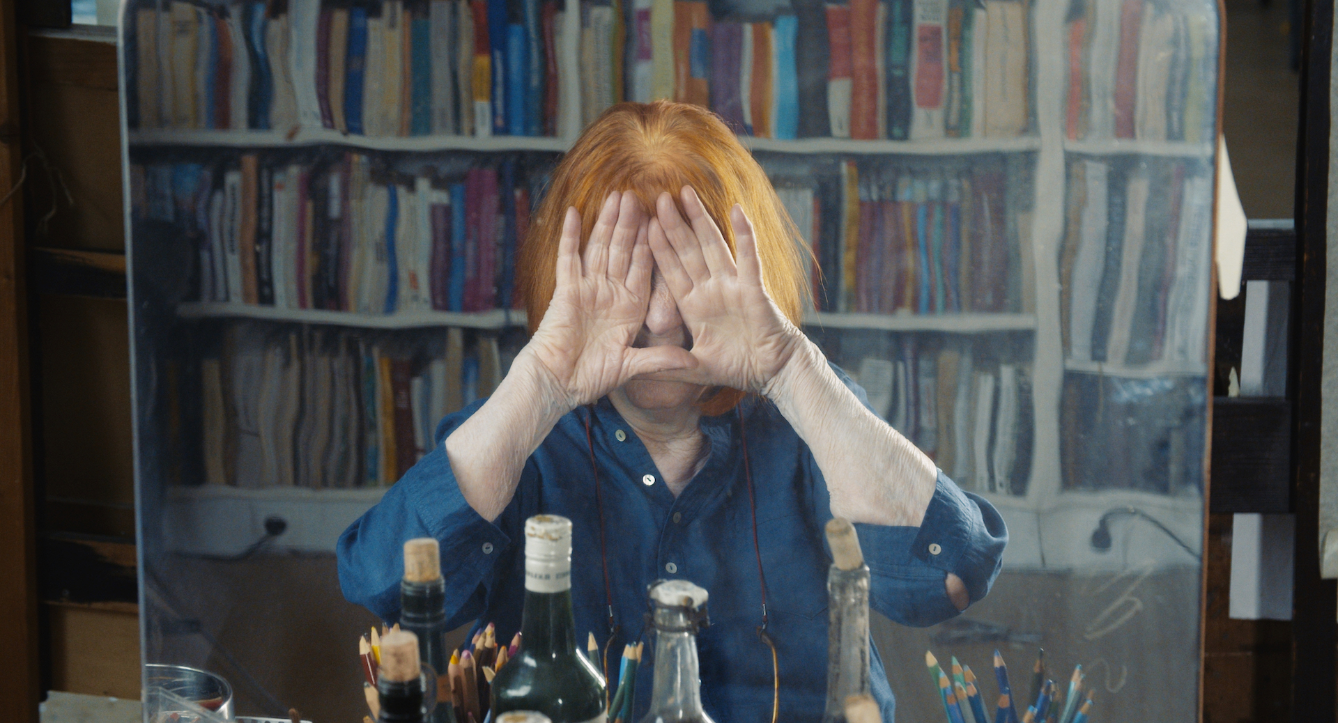 In her atelier, the ninety-year-old Florentina Pakosta talks art, money and navigating 1960s Vienna as a woman painter. Echoing Pakosta’s description of her self-portraiture practice, Wenn ich mich zeichne, existiere ich dreifach shows the artist posing and grimacing before a mirror as she answers the filmmaker’s queries, the camera framing her reflection. Part of Christiana Perschon’s series on pioneering women artists living in Vienna, the film crafts a personal interpretation of its subject’s aesthetics to create a formally aware archive of female creativity and an attentive study of a fellow portraitist. (Salvador Amores, Viennale 2023)