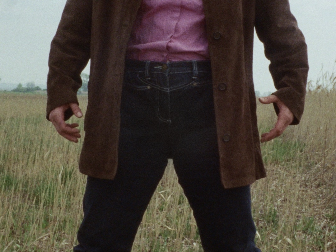 The duel as an archetypal cinematic arrangement: shot, countershot, extended time, confrontation, violence, men. Everything is different in Pistoleras. Precisely placed symbols – a score that sounds like a spaghetti Western, a costume of jeans and a cowboy hat – evoke an entire cinematic tradition by using minimal means, only to immediately toss it all overboard. The attitude is (not) an American one. The cowgirl stands there with her legs apart, but the quick grab at her hip – where a Colt is usually hanging – reveals bare skin and soft flesh. Oval cut-outs on both sides of the jeans allow disarmingly intimate views of the female body that no male gaze would ever have been able to capture. While a Western typically delights in more or less baroque death choreographies at the end of each duel, Pistoleras turns into a sophisticated and mischievous game of mirrors. The cowgirl trudges through tall grass and is self-sufficient, both challenger and challenged, is one, two, many. The agonal and mirror-like symmetry of the classic duel is overridden by using a mirror, of all things, throwing the composition into disorder and confusingly subverting all of the (visual) relationships. The viewer asks herself: What is real, what is virtual, what is surface, what is space? Mirrors are a prop with a long tradition in feminist experimental film, as tools for self-exploration and reflection. In Pistoleras, however, they in no way serve to construct images that would confirm and fix identity – the protagonist’s face is never seen in the mirror. Instead we get multiplicities, like grasses moved by the wind, and formless ephemera, like the clouds seen in the pale gray sky. (Elena Meilicke)