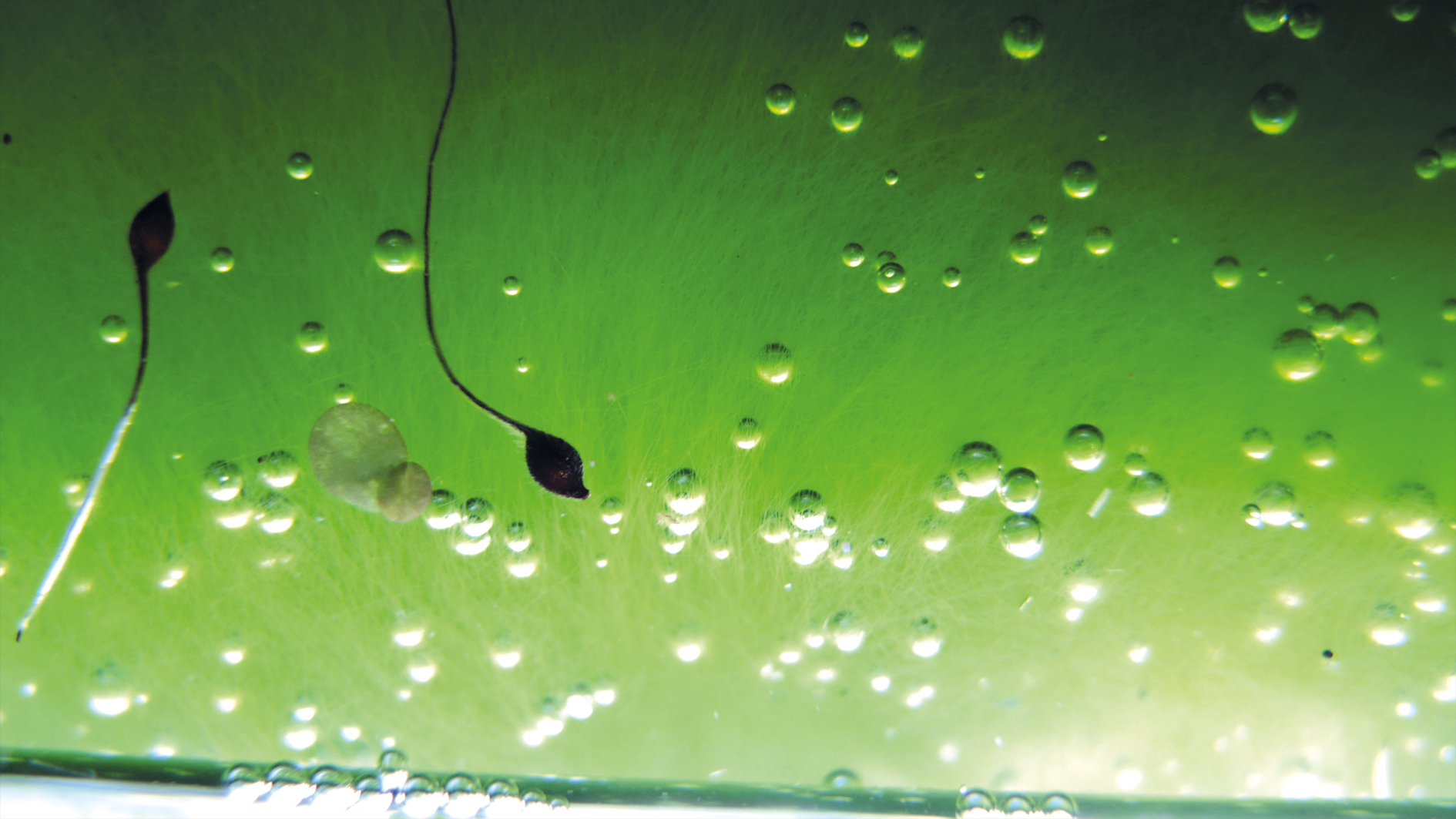 In "subotopic", the viewer's gaze dives below the water's surface downwards into ever deeper layers of water. In morphed single-frame switching, bizarre pictorial plants and insect creatures pass by the viewer. One dives into lightless spaces until one penetrates a surface of light again. Diving deeper and deeper, existing parallel worlds are made visible under water and new utopias are created. Above and below, inside and outside dissolve.