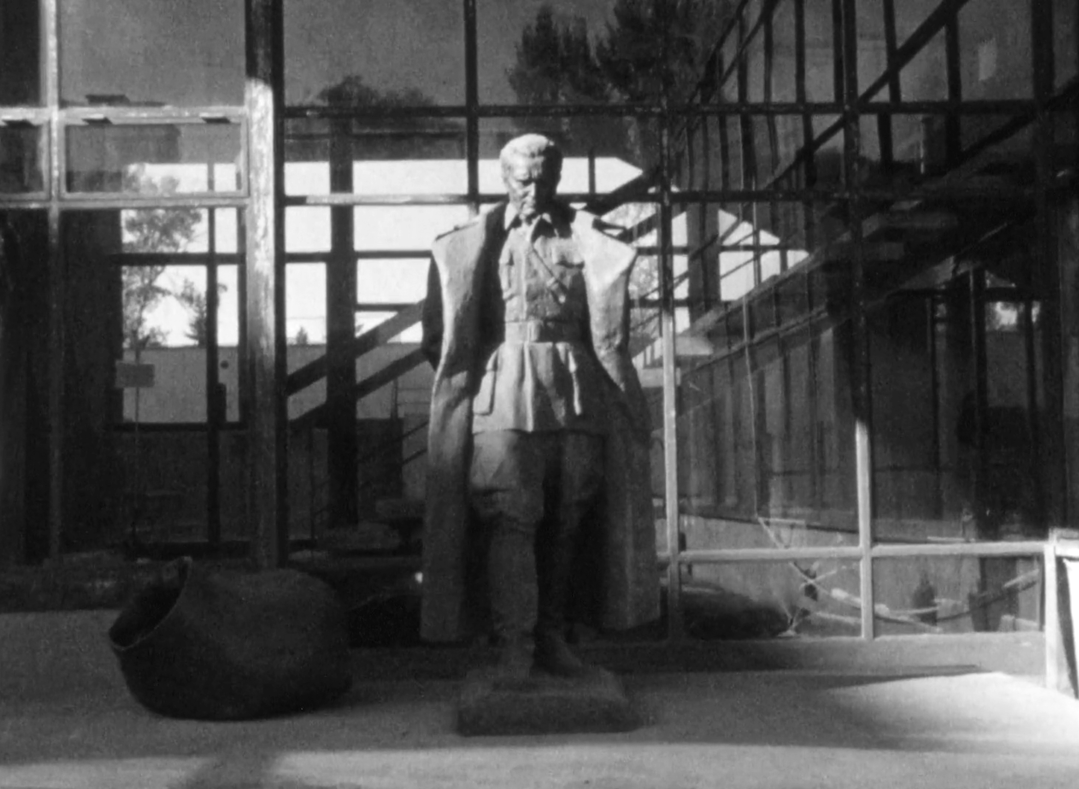 As a trained architect, filmmaker and artist Lotte Schreiber knows that remembering can also be a nostalgic, emotionally charged act. Schreiber expresses this nostalgia in her film language. In the Super 8 footage she interweaves several layers of time. The symbolic red of Tito’s socialism is mixed in with the black-and-white film, both in the intertitles and the image details of a few color shots. The geometric rectilinearity of the modernist museum building is accompanied by Hašimbegović’s narrative voice, which describes the institution from its beginnings to the present day. She always uses the pronoun “we” to emphasize the collective work of the joint effort. Tito and Yugoslavia may be a thing of the past, but Schreiber shows that their memory lives on in the architecture and the people who use it. (Berina Musa)
