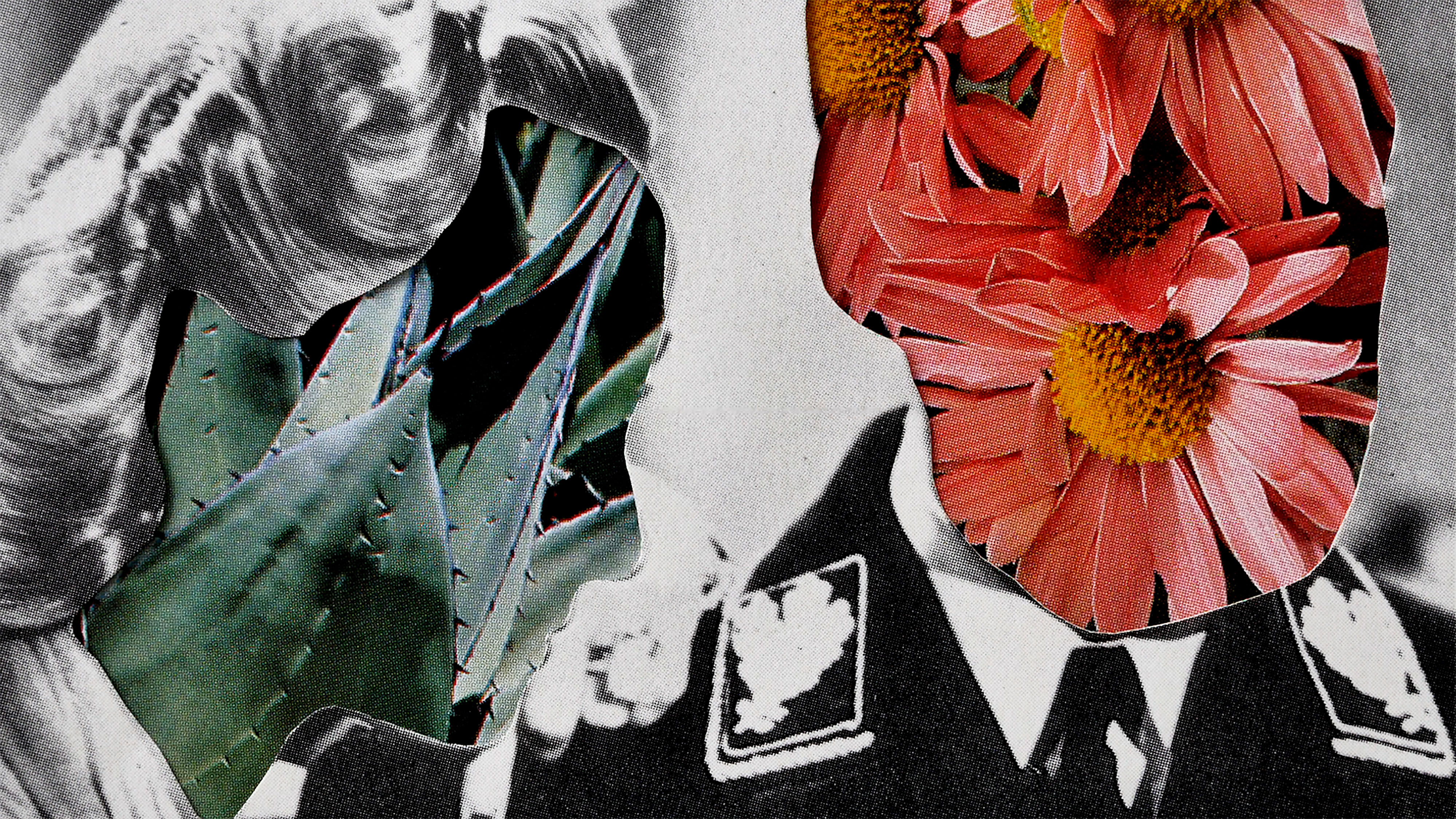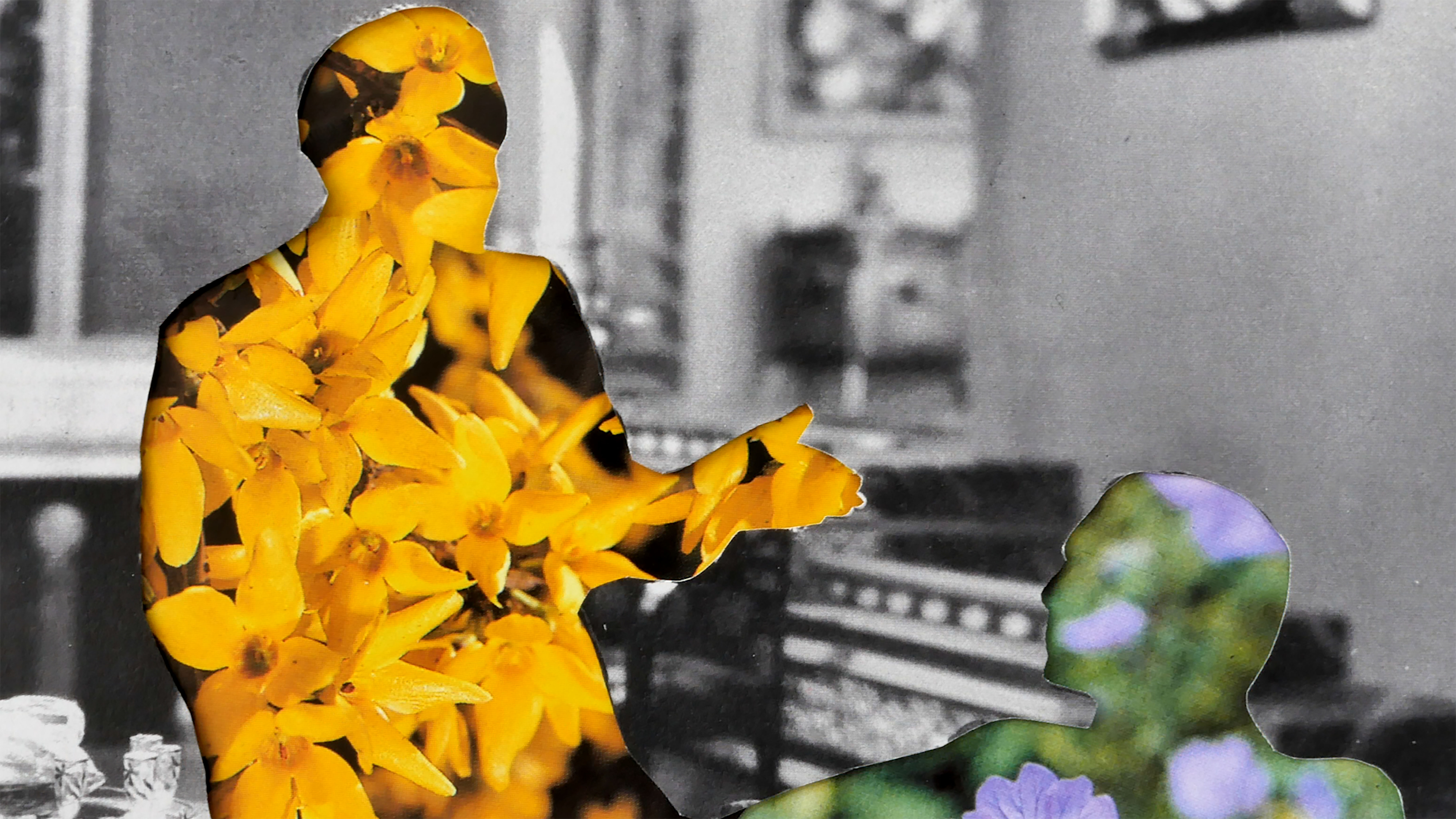 Portraits appropriated from old films and magazines become anonymized: Radiant tulips and spiky cacti whir behind cut-out mattes of peoples' heads. The flowers rotate, dance, pulsate. A botanical fever dream unfolds, framed by lustrous hair, pearl necklaces, evening gowns or gray uniforms. In contrast to the vibrant frenzy of the floral imagery, the framing sources of the mattes are static and in black and white. The imagery is accompanied by Kurt Schwitters' poem Sie Puppt mit Puppen / She Dolls With Dollies from 1944. It is fragmented from the get go, with lines tumbling to and fro until the words break down and dissolve into an electronic beatbox carpet of sound. Individual words crystallize out of the rhythmically fragmented babble. In the end, the short poem is heard in its original entirety. The video created by Karin Fisslthaler is a visual interpretation of the audio composition by Anna Clementi and Thomas Stern, which wildly transforms Schwitters' poem as it taps into the author's interest in decomposition and deconstruction.