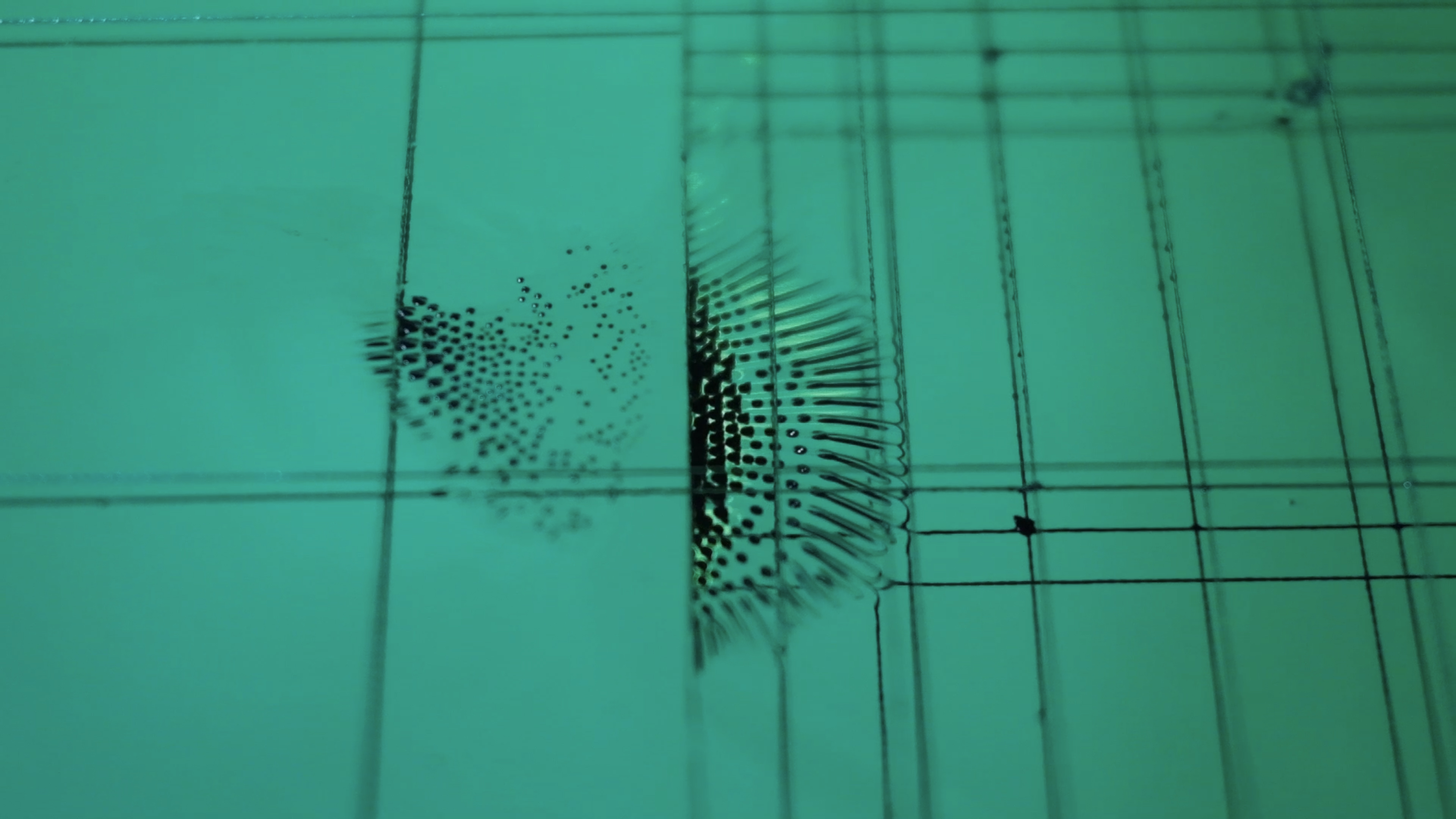 A Seed is Planted immerses the viewer in the materiality of forms as they flow, merge into each other, and drift apart – pulsating surfaces and polarized refractions of light. Complex field structures mysteriously emerge before disintegrating again or forming interference. Dancing drops crystallize out of heavy, reflective liquids, only to dissolve and melt away in the next moment.