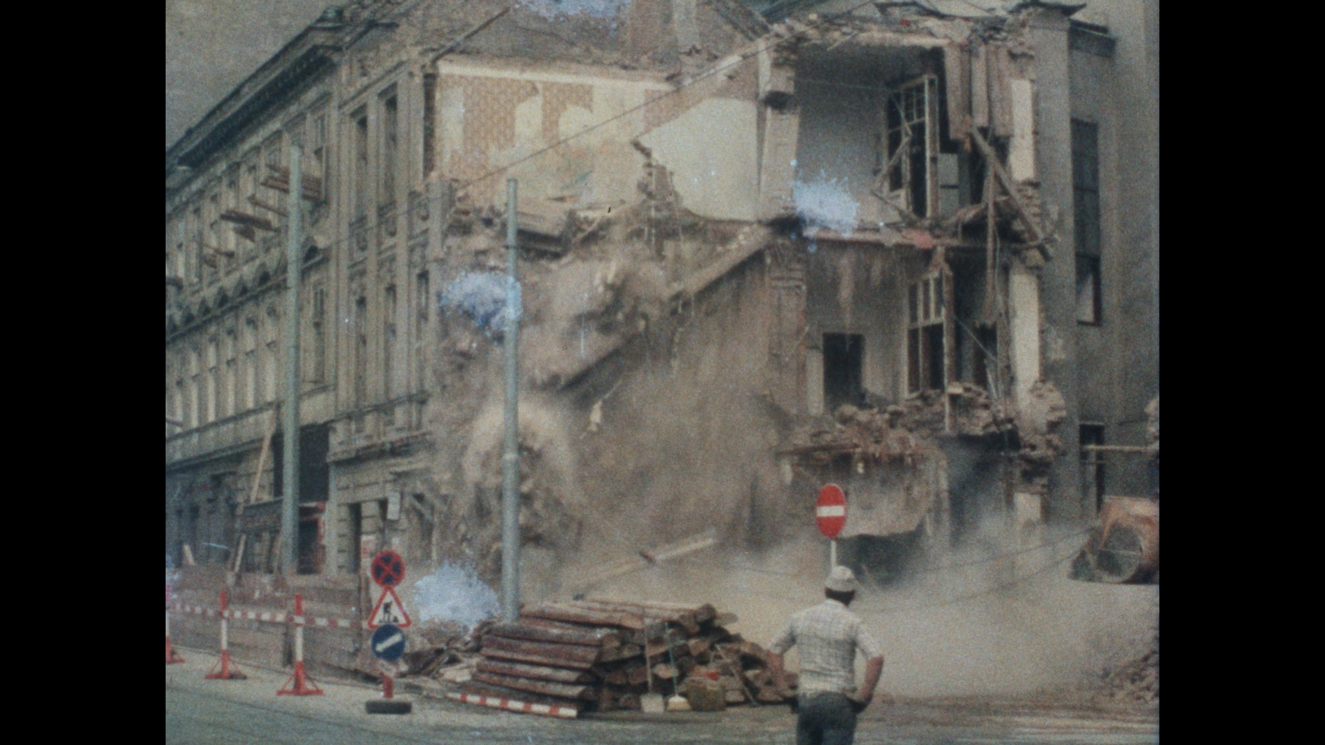 The theme is a wordless but nonetheless critical observation and juxtaposition of the historical and - at the time - modern architecture in Vienna with the decay, destruction and redesign of functional buildings, the beauty and ugliness of an old city and its pathos, and its new outskirts. In the second part of the film, a technique of double exposure, the superimposition of color negative and positive, is used as a kind of transfiguration of the situation. (...)