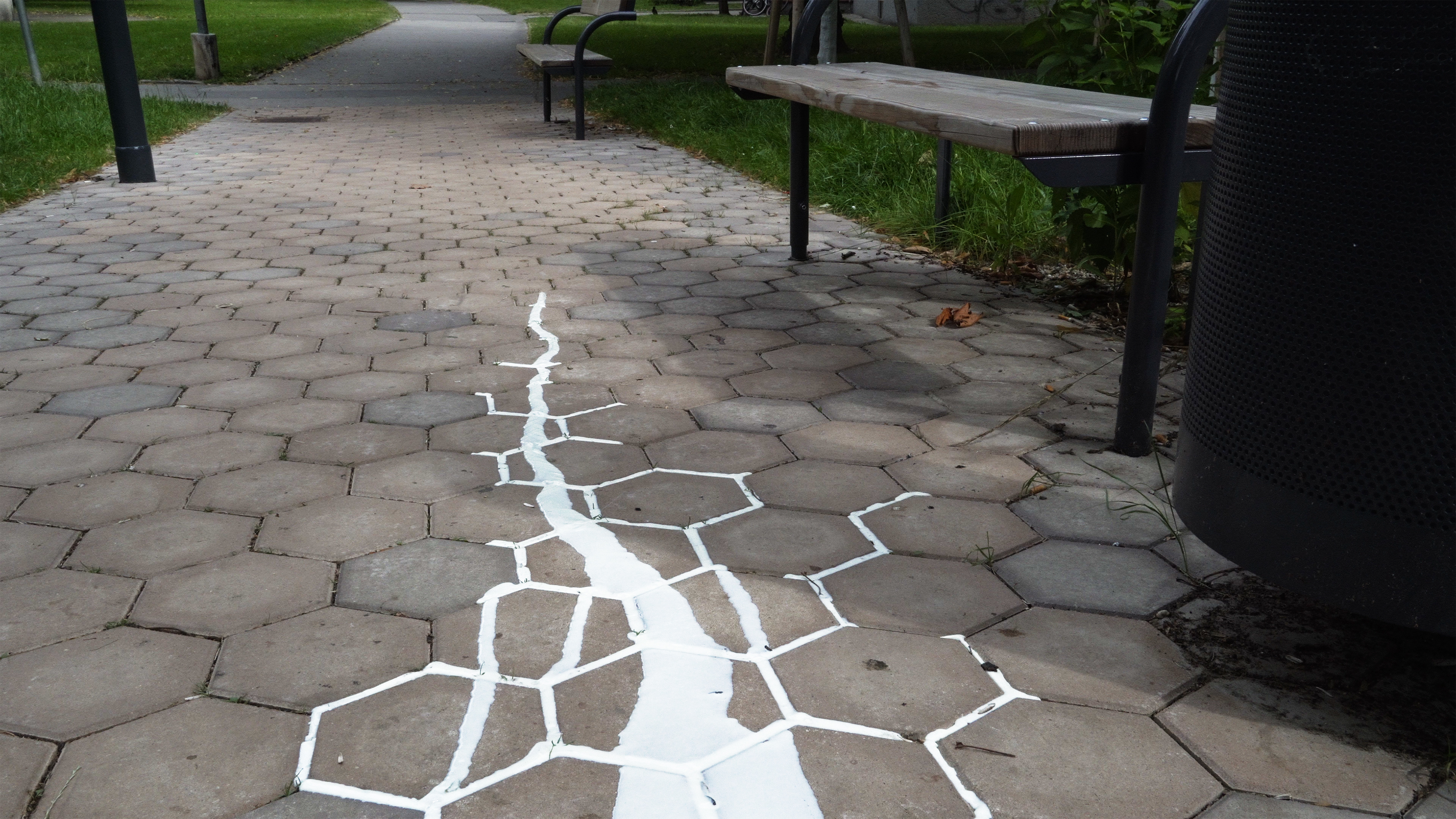Small rivulets of a milk white fluid flow from on high before gradually branching out and spreading a meandering path down into the valley. The branches proliferate as the flow spreads across craggy alpine boulders and meadow pastures, eventually reaching a residential neighborhood. At first, the branching flow has a poetically meditative effect, enhanced by sounds of streaming waters. But a threateningly sinister feeling increasingly takes hold as the film proceeds.
