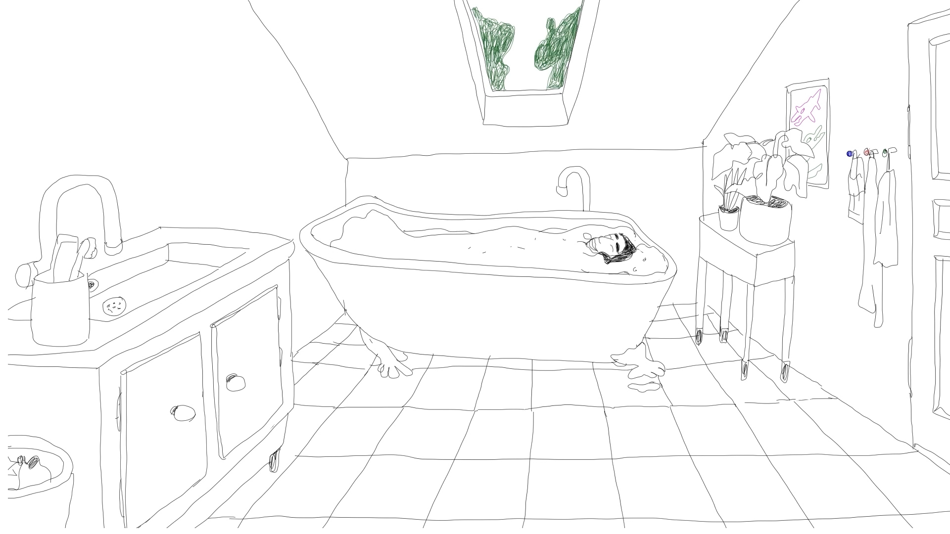 Astrid Rothaug's animated film, Challenges of a solitary mind is about a female protagonist in midst of familiar everyday situations: big family dinners, parties, office work, me-time, romantic love, bonding with a kindred spirit. Rothaug captures all of this in clean black pen-strokes with sparing color accents. The sound follows the actions and highlights the mood, ranging from benevolent to exhausting to threatening. The snail's shell either covers her up with a sonorous noise or fans back to reveal her – it all depends on whether the everyday heroine needs protection or is in a state of exaltation. It is her decision as whether to calcify or not. Hans Christian Andersen's fairy tale “The Snail and the Rosebush” comes to mind, about how the two protagonists exchange philosophical views on their peaceful coexistence. The bush always has to sprout blossoms to emerge from itself, unlike the snail beneath her which, “[...] has much inside itself, it has itself,” just like the solitary mind that lends Rothaug's film its title. Very reassuring. (Melanie Letschnig)