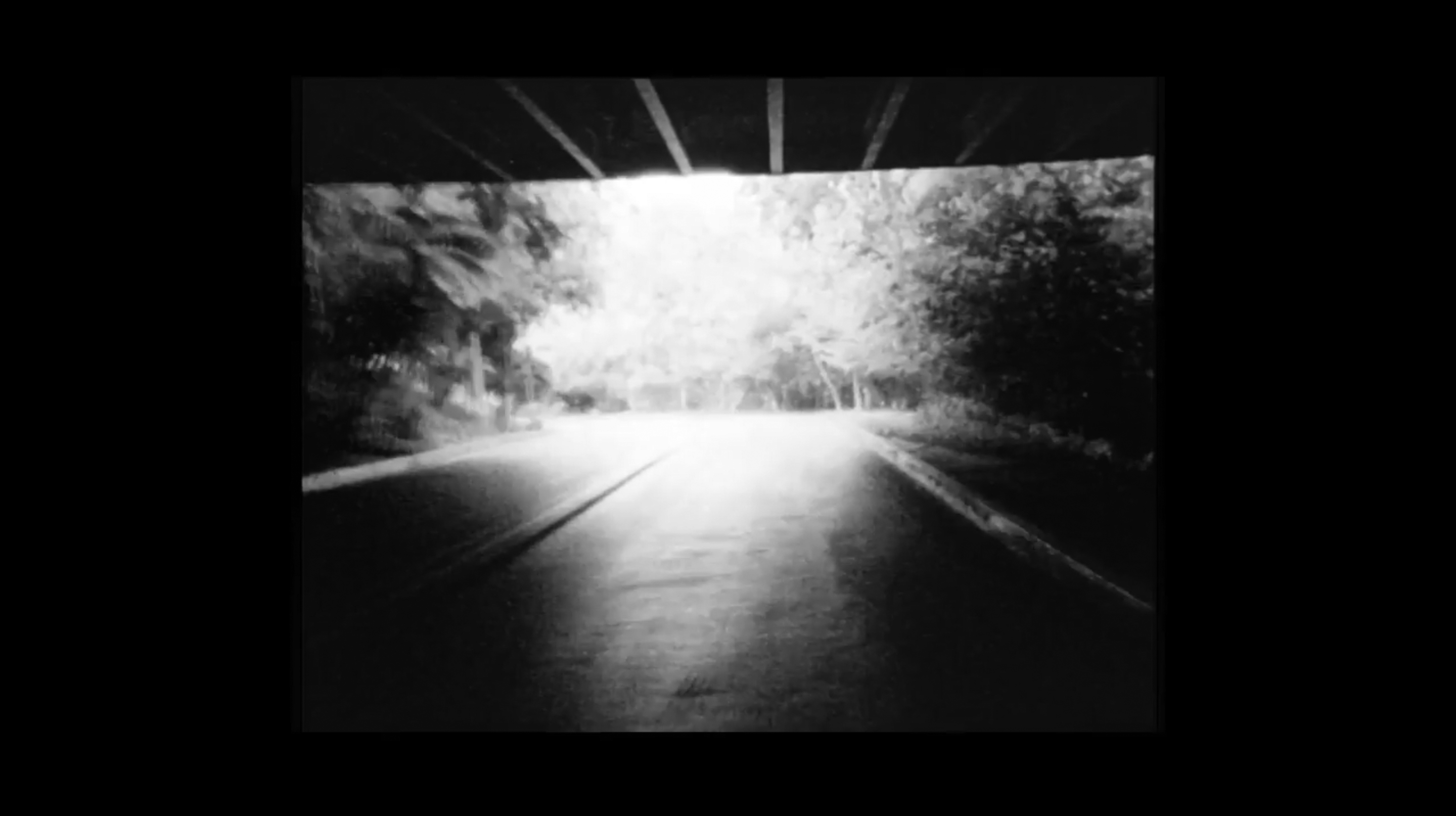 Shimmering black-and-white shots of swaying branches are superimposed on porous Super 8 images of an endless highway. A harsh light engulfs the images. Backlit silhouettes dance in slow motion until the circling disco ball transforms into a rotating water sprinkler and the moving lights above the dance floor suddenly shine like a blazing sun over the highway.