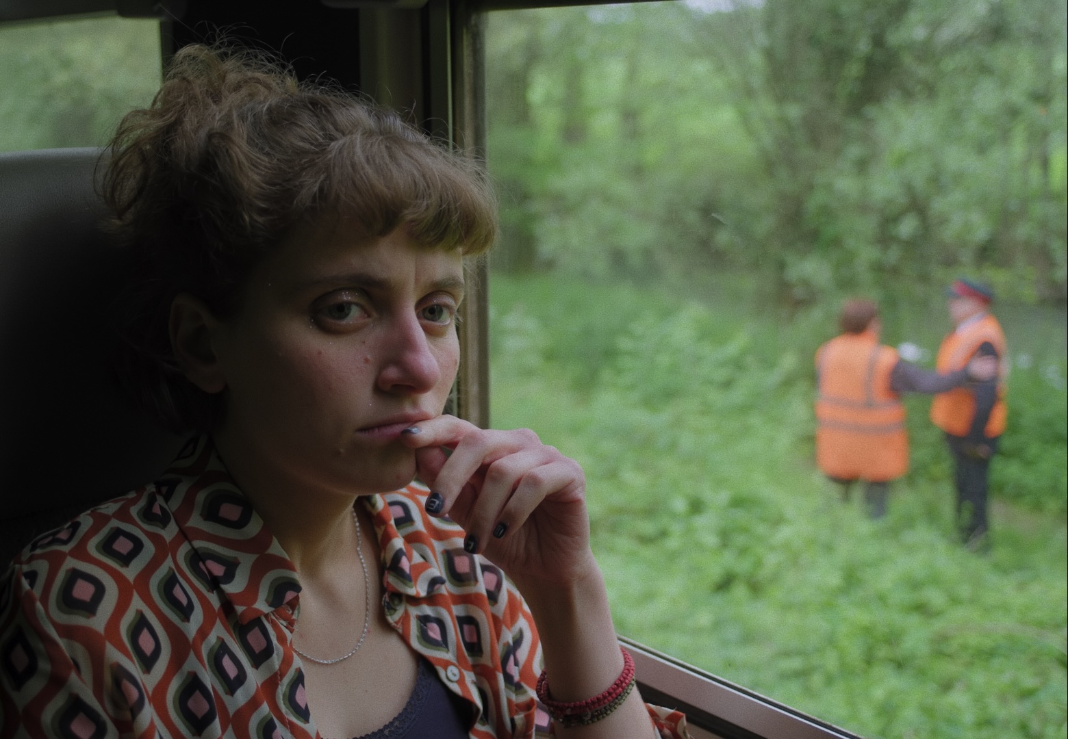 The intimately documented moments between Cordula and her grandmother are interspersed with a staged train journey that takes place in the present. Here, Cordula herself is traveling on a crowded train to Paris when it suddenly makes an emergency stop. As the train abruptly brakes, reality reverberates in the fiction. It finds an echo chamber in the sudden standstill, where the issue of reality vs. fiction can expand further while also reaching its limits: How can we understand each other in and through shared moments?