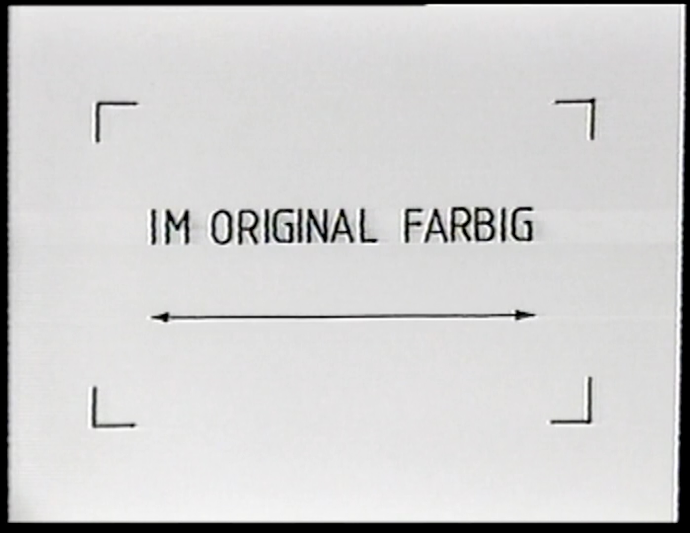 As in certain software programs, the part-films here are announced by menu. The display lights up. The menu image, pulled on to the screen by synthetic means, gives way to the scene already running in the background. This is a satirical, creative, musical item designed for the computer. (femme total, 1992)