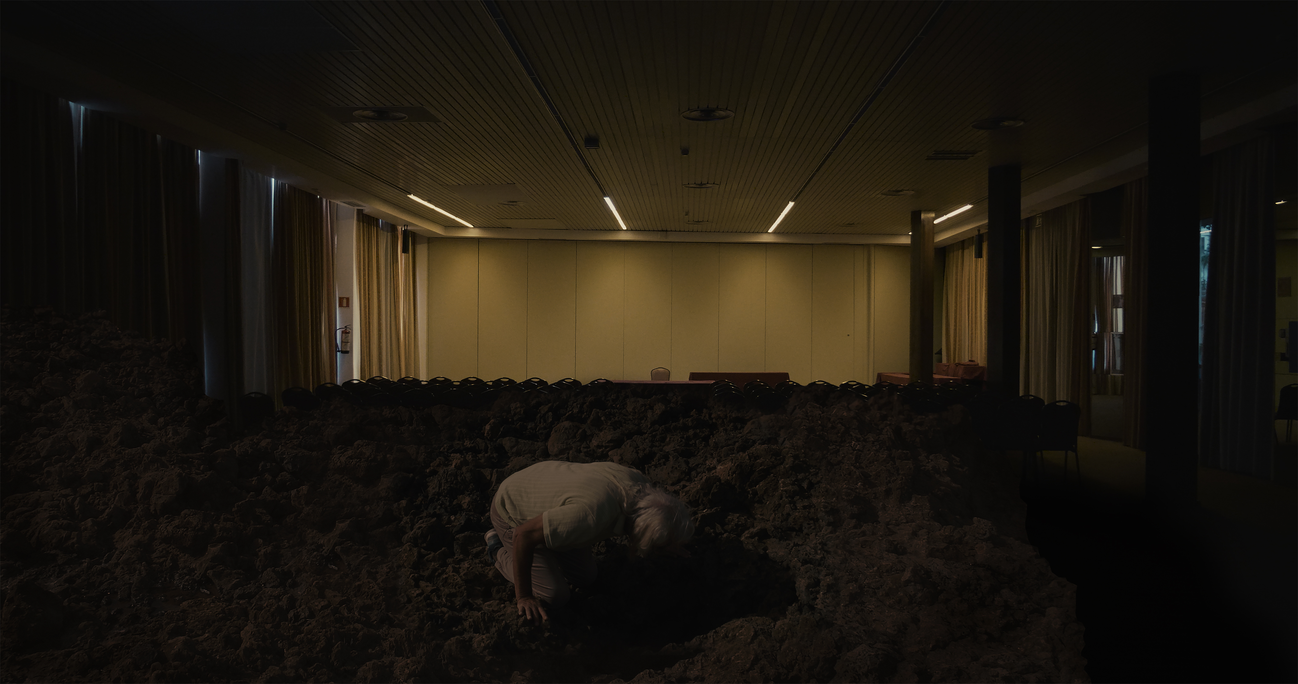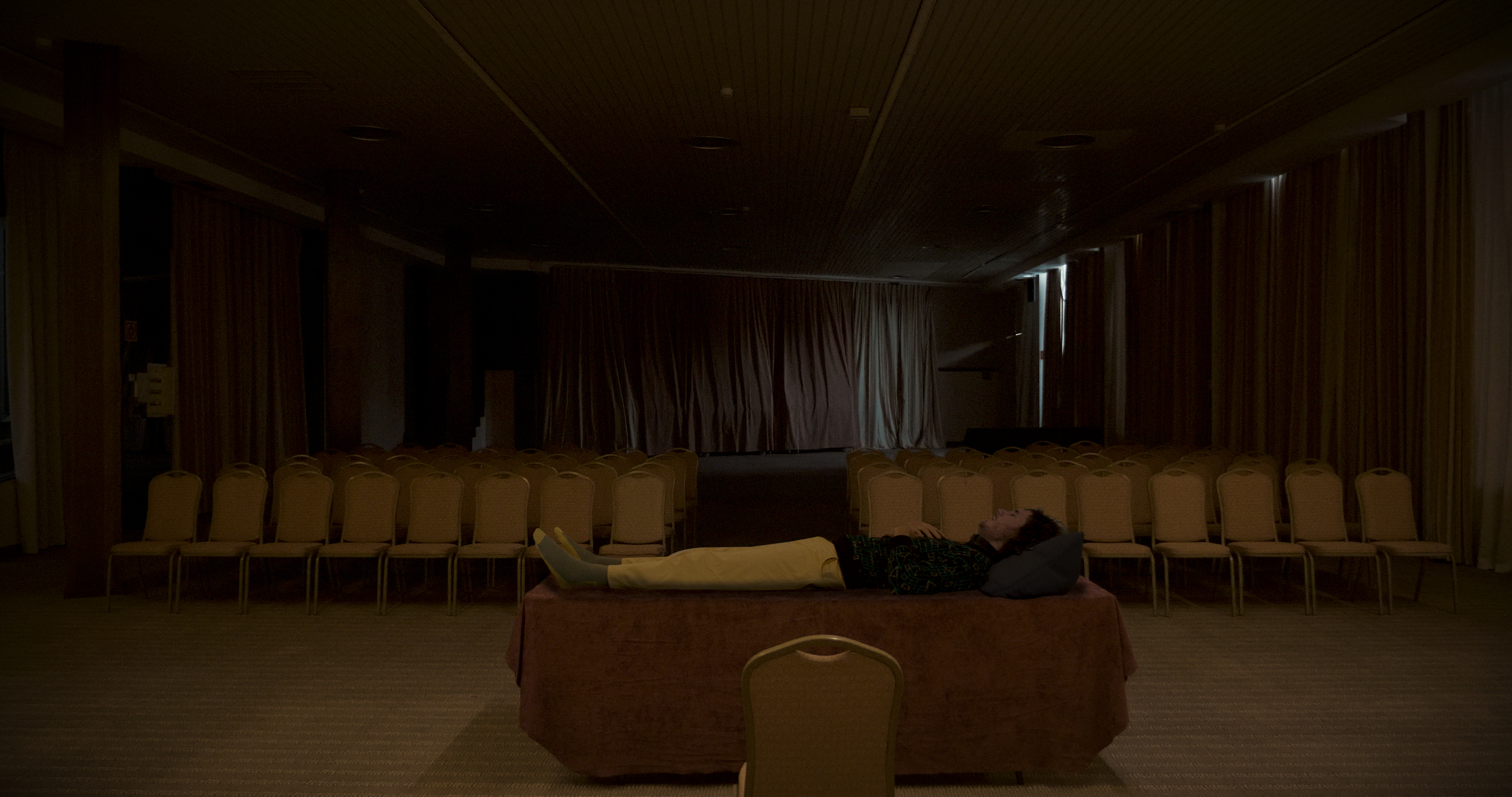“It’s a question, a fear that keeps coming back: whether these thoughts can skip from Ralf to me,” Lukas Marxt says at one point. He’s lying on a table, in a somehow therapeutic setting, with an auditorium of empty rows of chairs behind him. “Somehow” isn’t a filler word when writing about this film, but a key. Everything visible is clear and distinct before us and somehow always difficult to describe: waves somehow break in the reflections of glass hotel doors, confined interior spaces somehow expand into the desert in the depth of the image, a pan scans the visible space and at the same time somehow creates space for another image. Seven years after Ralf’s Colors, Marxt and his artistic collaborator Michel Petri return with this film: to one place, Lanzarote, to one person: Ralf Lüddemann, to his form of perceiving the world, the planetary work. And in their search for the traces that Lüddemann’s thinking – which some might call confused, unrealistic, or manic – has left in them and their artistic work, they also somehow return to themselves.