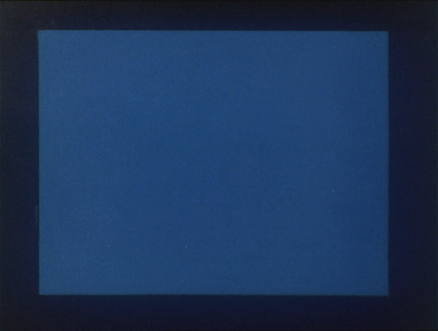 The work is an investigation on the correspondence and coefficience of image and sound. The rules of an old Arabian game, Kalah, played by two players with 36+36 stones, work as a ready-found system for generating the film. The filmstrip registers all the positions of the steps of a drawn game, converting the elements into 72 color-forms and 72 sounds of a chromatic scale. Both run in quick sequences (12 frames/sec) side by side in perfect simultaneity. As I had no computer, I manually edited the raw material produced by the sounds. (D.M.)