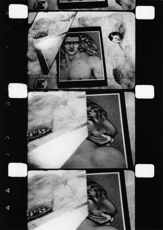 On the technique of my films: I like to work with photos, which I adapt to the film both illusionary and as a medium - with the animation of the objects, with cash, spangles and mirror - rephotography and superimpositions. I often portray a very slow image of time, like a snail crawling; often the pictures fall, one after another, the film grows faster through the use of single-frames, from top to bottom, like when a pearl necklace breaks. Dividing the scenes using black leader is important to me, this causes a black-out or a "closing of the eyes." The film's movement is composed of a sequence of single static frames, there is very seldomly real movement, i.e. a person in the picture. I am fascinated by the change of the color tones in the individual scenes. Slowly, a change takes place, the reversal from black and white to color, from lightness to darkness. For example, at the end of the film Anna, roses dry out and change in their shade of red through the use of mirrors and red lights. Another scene in this film suddenly loses all of its color and turns very light until the blank film becomes visible.