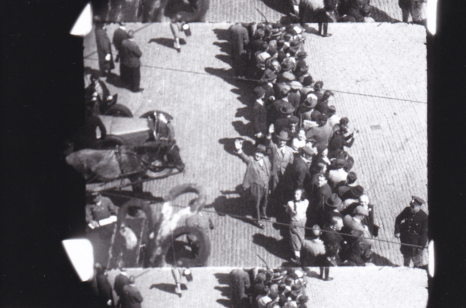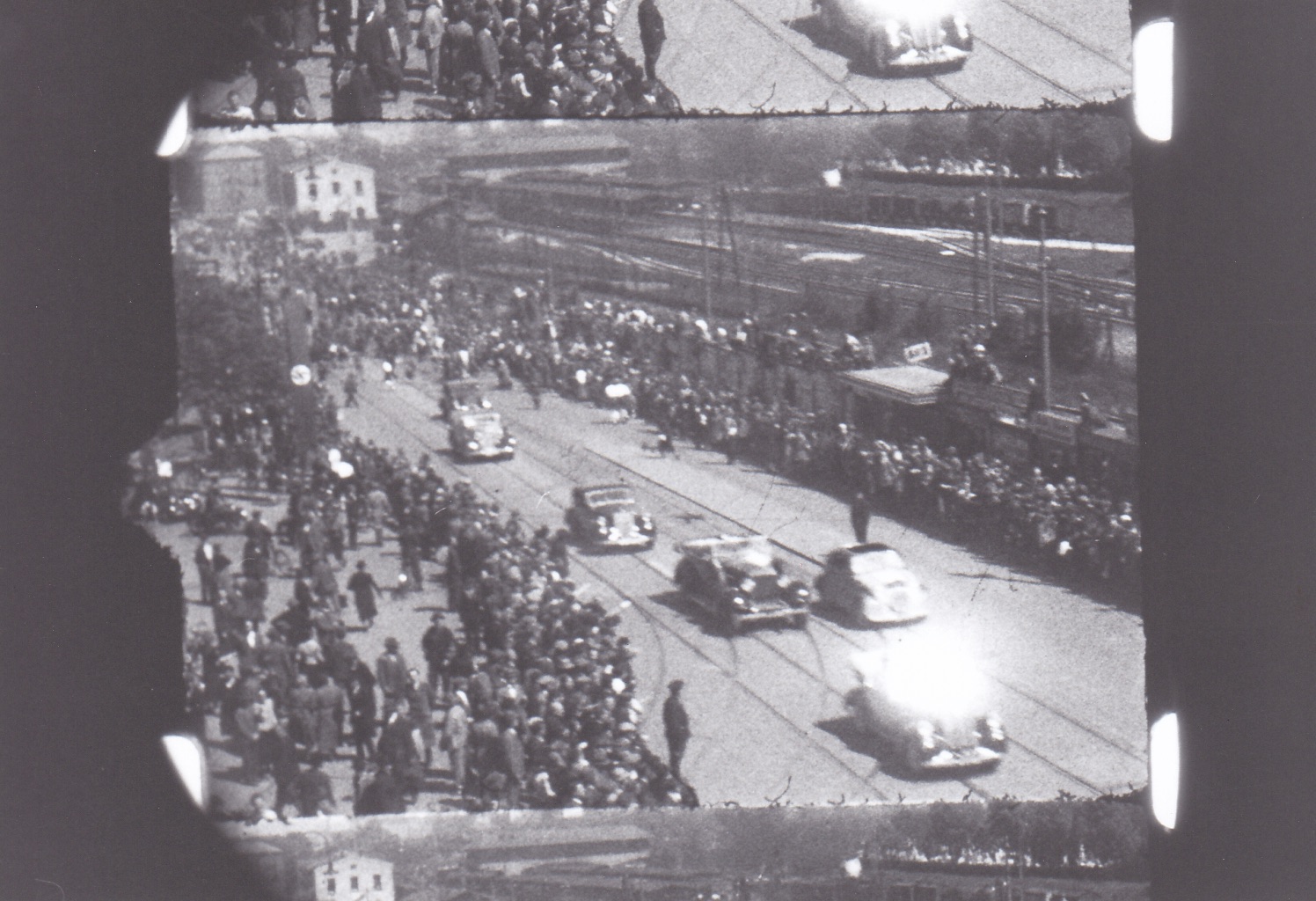 The film Günther 1939 (Heil Hitler) consists of found footage derived from an amateur film from 1939. The re-working of the material by Johannes Rosenberger is a protest: sheer indignation, and unsubtle, with good reason. The original film, made by a husband and father consists of three stories: 1. My beautiful wife has given birth to a beautiful child. Look how they are looking at me. 2. Down on the street a parade is going past, look at all the uniforms and all the people. And there goes Hitler! 3. And thats where we went on holiday - sailing and in the woods. Rosenberger repeats these three pieces in their original sequence by re-photographing them on the optical printer. His intervention lies in the fact that he emphasises the borders of the picture by photographing not only the image, but also the edge of the film and the framelines; he slows the rhythm enabling a search of the historical moment (Hitler driving past) and overlays the whole with a soundtrack - a rhythmically scratchy beat, a shrill, jarring sinus tone and Robert Schumanns song May, lovely May, you will soon be here again. The protest implied by his intervention is directed against the objectifying position of the amateur filmmaker. In the process of documenting important moments in a life, everything is reduced to a sameness, everything special to the indifferent. The passive and positivist bourgeois peeps out from behind this point of view.