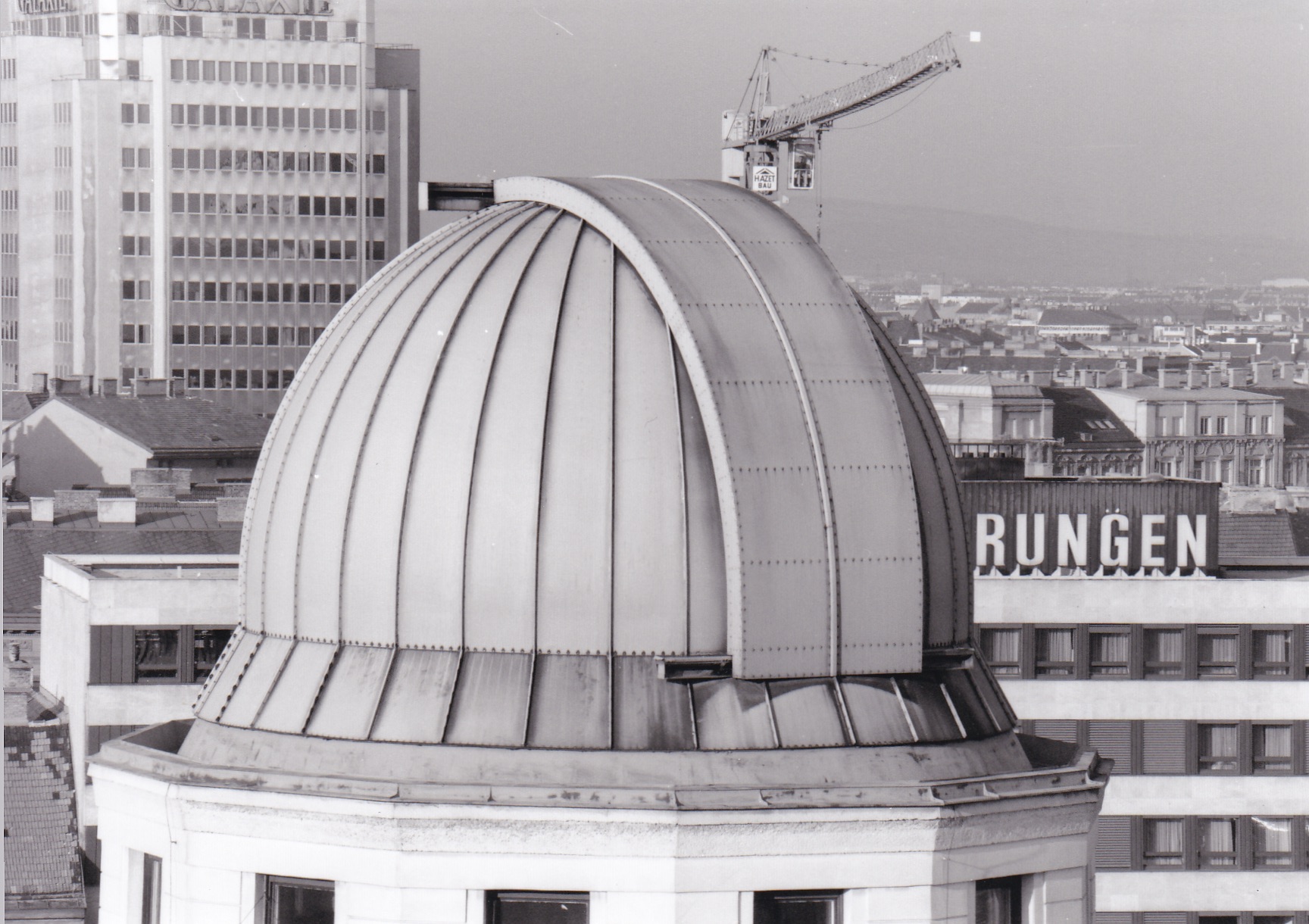 Two ideas thread their way through Schönwiese's film at the same time. The first follows the thread of order, of making order, the structure and measurement of space and the stategic geometries that connect to the idea of the midpoint and where it is simultaneously proposed to erect the subject and body above that middle.Deriving from this, the first part of the film has the form of a musical round which circles the idea of the middle (and its deconstruction) and continuously re-defines the structural relationship between cinema, observatory, aeroplane, church and space rocket - as an applied method to both observe and imagine the world as seen from a (moving) point. A constant motif in this rondo is the Universal Pictures company logo, used as an identity-inducing and pathetic symbol of this universal, centred idea of a world encircling arena.