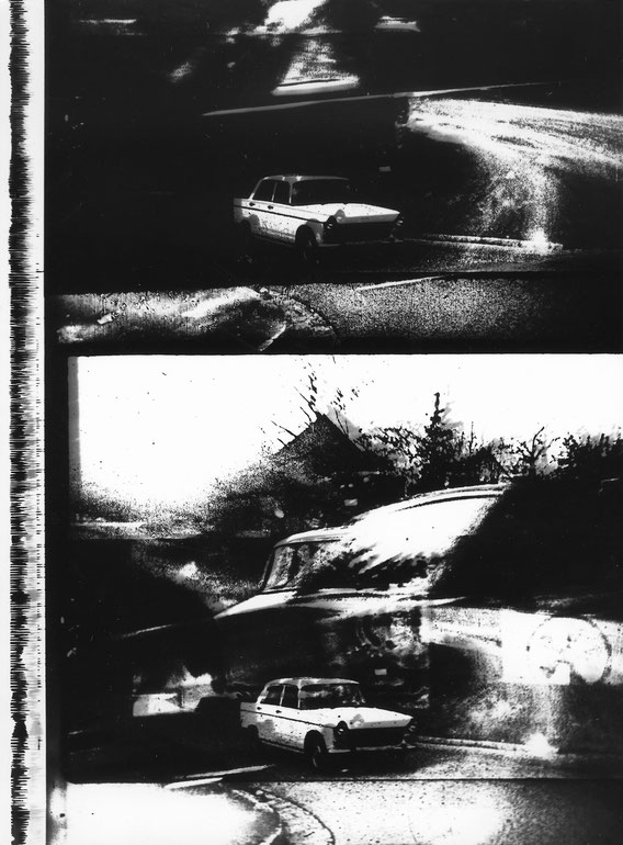 A tangled network is woven with particles of movement derived from found footage and compiled anew: the grammatical elements “to the left, to the right, back and forth” of narrative space are discharged of all semantic burden. What remains is a self-sufficient swarm of fleeting vectors, furrowed with traces of the manual processes of darkroom production. (Peter Tscherkassky)