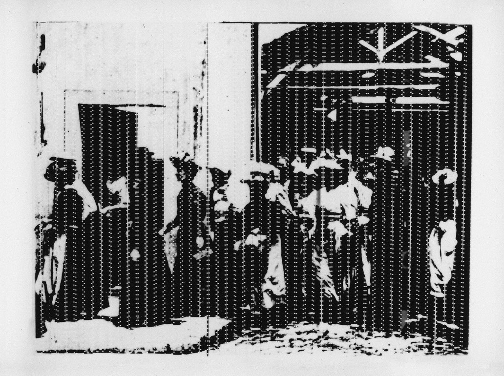 The result (…) returns the source material to its elemental components, to light and dark – and much like the enlargements in Antonioni’s Blow Up thereby empties it of all figurative meaning. (Gabriele Jutz)