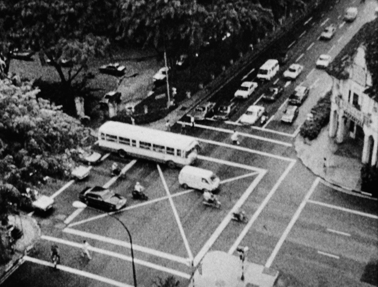 Vienna, Singapore, Hong Kong, Taipei, Tokyo, Kyoto, Los Angeles, New York, Vienna. On an eighteen-day round-the-world-trip, the camera made one picture every minute. During the day, during the night, in suitcases, in the aeroplane, train, bus and hotel room ... 25812 pictures round the world. A film document of world/time. (Gustav Deutsch)