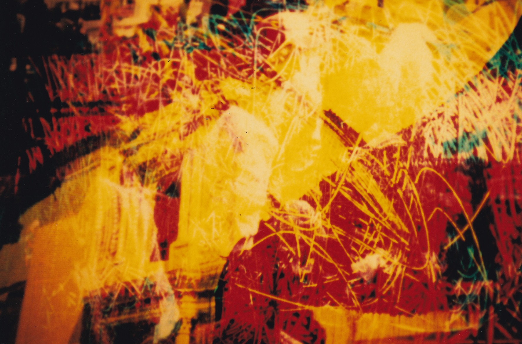 Zócalo presents us an intensely coloured catalogue of holiday snapshots from Mexico, complete with bull-fight, Aztec pyramids and Caribbean beach. In the studio Steiner has animated these to a meteoric dance and fundamentally re-worked with over painting. The film uses energetic, fleeting, pulsating pictures and a repetitive, driving music line which reminds one of Steve Reich. Somewhere near the middle of the film the music, which, as with the pictures, has been alienated by Steiner, resolves itself into a 1:1 reproduction of the now separately perceptible acoustic instruments. Zócalo is a work in layers, where the uncountable visual levels - created by multiple exposure - are subject to a continuous interplay between dissolution and separation. At times the abstract, gestural painting covers the snapshots that exist "behind" it completely. Often Steiner works with masks when applying the over-lying surface so that the integrity of the film picture is breached, and "windows" are created that allow a view from the two dimensional level into the representational three dimensions of the photographed scenes. For the most part, the abstract and the all too concrete alternate with extreme speed. The result is a game of hide and cover-up in that the readability of recognisable (not to say cliché) pictures is withdrawn again and again.