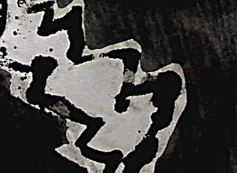 There´s not really a text to accompany the short film b>From Back to Front. A film without a text, so to speak. Drawn on paper with black India ink; from various symbols on the front to symbols on the back; shot in fragments. The film remains silent, because the finished soundtrack was accidentally deleted. (M. A.)