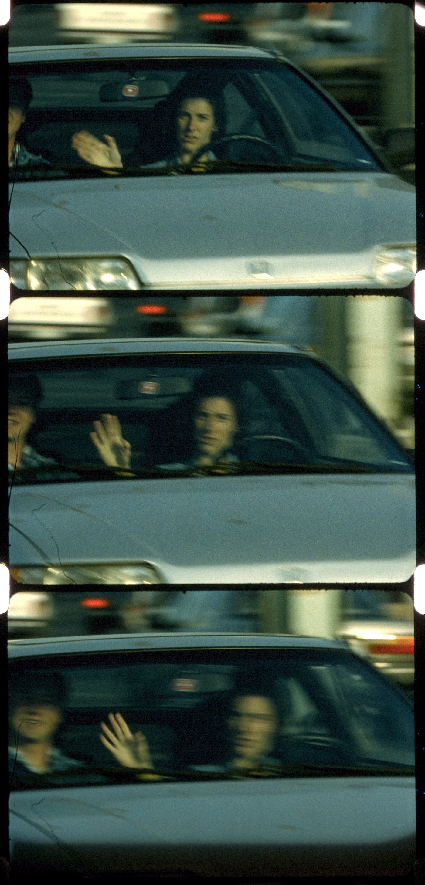 Thomas Korschil's films are clearly tied to a certain tradition of American avant-garde cinema. In Spring, in Sunset Boulevard and in his latest production, Platz da, Halt, the film-maker, who studied in San Francisco with Ernie Gehr, takes up techniques of structural cinema; Sunset Boulevard uses a simple serial method, by which Korschil, similar to Gehr or the Canadian Michael Snow, produces physically involving cinematic dual aspect images; treacherous examinations of the apparatus of cinema and external reality, with only an initial appearance of monotony. Under the fixed gaze of Korschil's camera, a busy road becomes a merry-go-round of isolation; a series of faces, each appearing for a fraction of a second from out of the endless stream of traffic; people, alone in their vehicles, which shimmer red and blue in the sun, mere fleeting phantoms in the film material. (Stefan Grisseman 1994)