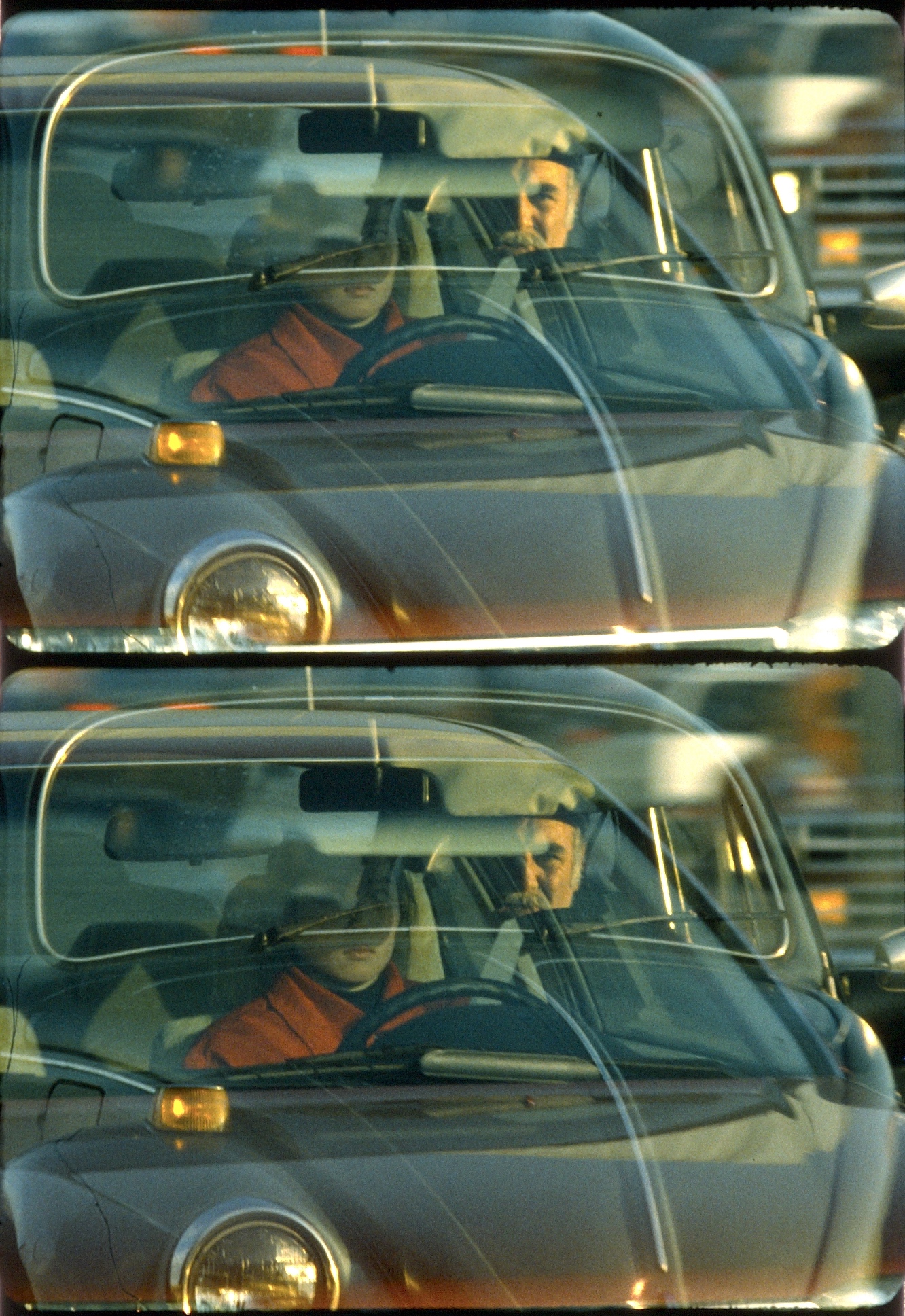Although this film originated, and can now be perceived, primarily as a visual and especially as a kinetic event – at times the whole thing starts to spin like a caroussel –, the social realm is of importance. SUNSET BOULEVARD might be seen as the attempt to simultaneously picture the two big, contradictory myths of U.S. America: the myth of unlimited individualism („lonesome rider“), and the myth of the ominous "melting pot". All kinds of people are, all in the same way, but mostly alone, caught in their cars, which remind of other containers, between which we are constantly moving back and forth, ultimately in a circular fashion, as suggested on screen. (T.K. 1991)