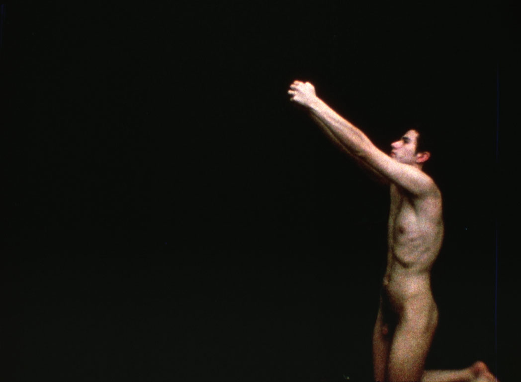 A human body directly interacts with the fix mounted camera which takes a picture of this body every five seconds. Changing towards one another, alternating, strict disciplinary positions and poses of the whole body, and of parts of the body bring about the following: The person is simultaneously made into a multiple "optical producer of rhythm," splitting itself into many identical bodies or fusing them together to form new types of beings. The basis of composition are centrality and symmetry, which are then broken. (A.S.)