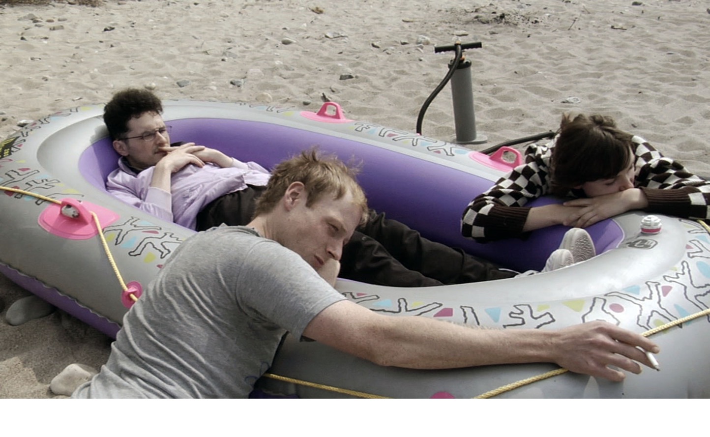 How to become calm is a fictional film about three artists who run a workshop for young workshop for young migrants. The three of them move into a studio and spend months looking for suitable poses. They dress well and search for phrases that the zeitgeist is pushing.