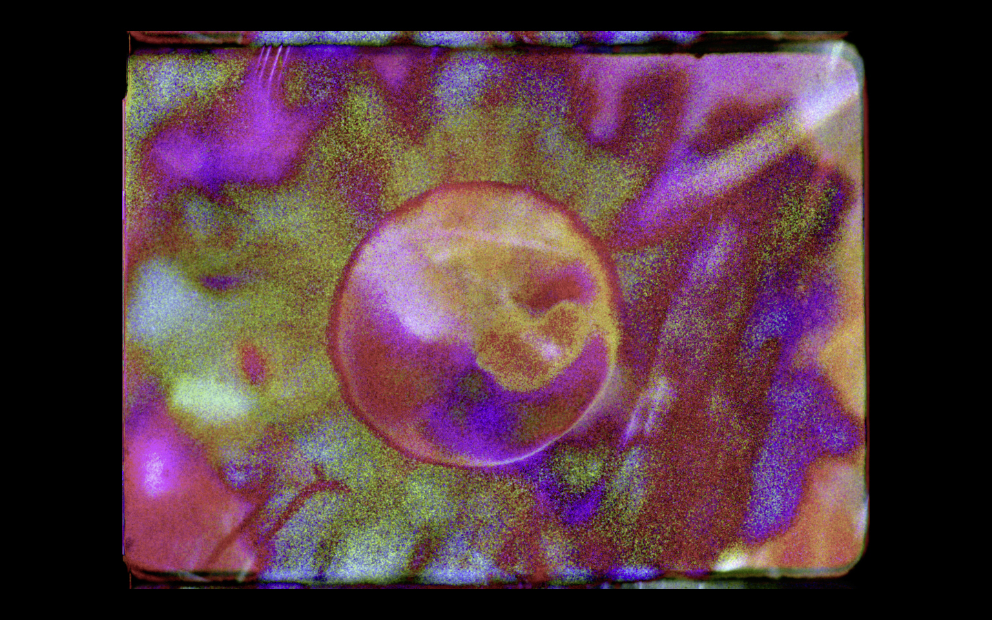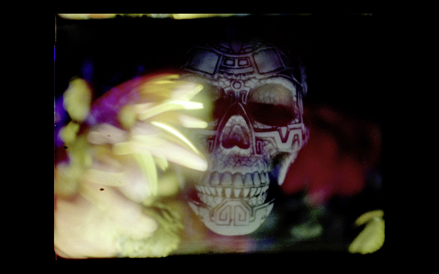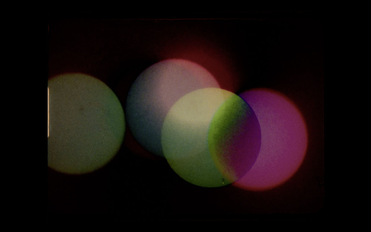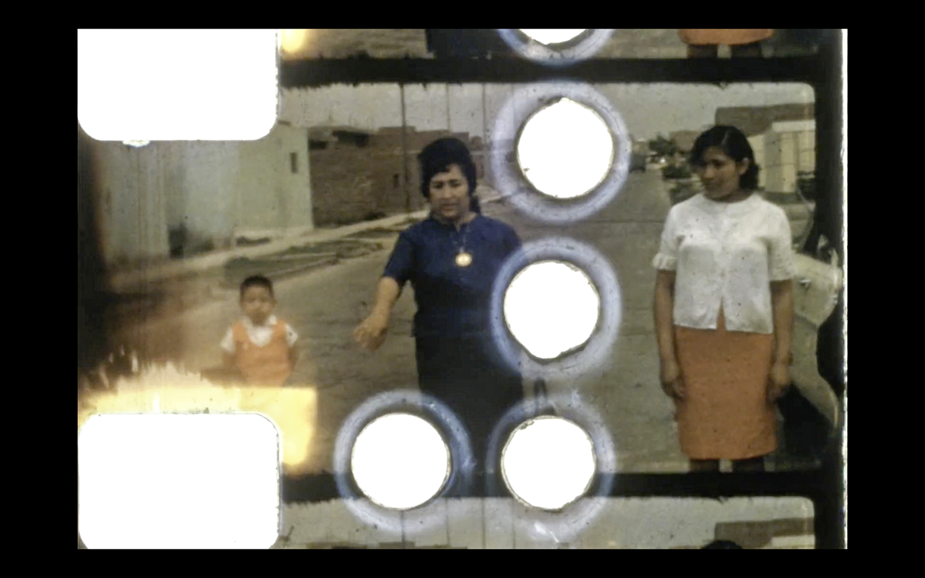 In DANZA SOLAR, the circles of the sun and the moon are silent and almost abstract, like the animations from the Visual Music of the 1920s. Soon these circles become searchlights and catch sight of people in traditional Andean garb dancing on a plateau. The dance being shown is Super 8 archive material, while the (reappearing) motif of the dancing sun is shot on 16mm. TLÁLOC is the Aztec God of the rain; in the film of the same name, found footage is looped and painted over by hand. VISIÓN DE ANÁHUAC shows a ghostly view of a city from a bird’s eye perspective: Anáhuac is the Nahuatl word for “land close to water” and the name of the Aztec land which forms the site of present-day Mexico City. The soundtrack brings Anáhuac to life in uncanny fashion... or is it being set on fire? SENSEMAYÁ is a kaleidoscopic found footage trip, the titular music is by Mexican composer Silvestre Revueltas and is based on a poem by Cuban poet Nicolás Guillén—a song to kill a snake.